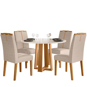 Conjunto Sala de Jantar Mesa Isabela 1,17m com 4 Cadeiras Serena Ypê/Off White/Al10 - New Ceval