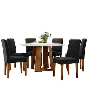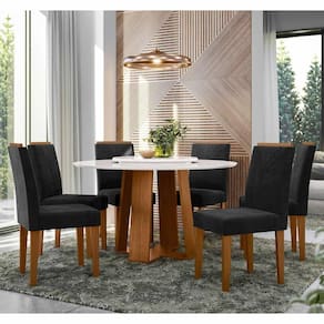 1 Mesa (Tampo + Base/Pés), 6 Cadeiras, kit ferragem e Manual para Montagem.