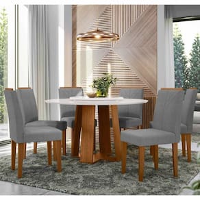 1 Mesa (Tampo + Base/Pés), 6 Cadeiras, kit ferragem e Manual para Montagem.