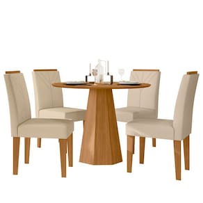 Conjunto Sala de Jantar Mesa Isis 1,00m Tampo em Mdf com 4 Cadeiras Amanda Ypê/Ln04 - New Ceval