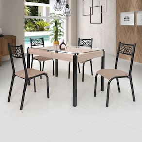 O conjunto de mesa Jade, é o conjunto ideal para sua cozinha, na cor preto fosco e com tampo de vidro 1,2M X 0,75M, possui 4 cadeiras com design moderno e anatômico, estofado em tecido linho ideal para seu ambiente. Acabamento da Cadeira/Banco: Pintura Epóxi Acabamento da Mesa: Pintura Epóxi Almofada do assento: Removível Altura do Conjunto: Ambiente Principal: Cozinha Apoio para Braços Estofado: Cadeira/Banco estofada: Sim Cadeira/Banco suporta até: 100 Complexidade da Montagem: Baixa: pode ser montado por uma pessoa sozinha Cor: Preto Fosco/Linho Bege Cor do Produto: Preto Fosco/Linho Bege Enchimento do Assento: Espuma D-14 Enchimento do Encosto: Escala de Brilho: Fosco Espessura do Tampo: 8 Estrutura do Assento: Estrutura de madeira pinus compensados, porca agarra metálicas, espuma e courino sintético 20mm Estrutura do Encosto: Aço Informações Complementares: Itens Inclusos: 1 Mesa, 4 Cadeiras, Kit Ferragens e Manual de Montagem Linha ou Coleção: Manual de Especificação Técnica: Manual de Montagem e Instalação: https://cdn2.madeiramadeira.com.br/atributo/moveis-ciplafe/1216901-141-jade.pdf Material da Base da Mesa: Aço Material da Estrutura da Cadeira: Aço Carbono Medida da Base (A x L x P): Medida da Cadeira/Banco (A x L x P): 91x37x49cm Medida da Mesa (A x L x P): 77x75x120cm Medida do Canto Alemão (A x L x P): Medida do Suporte Giratório (L x C x E): Medida do Tampo (L x C x E): 75x120x0,8cm Mesa suporta até: 10 Necessita Montagem: Sim Origem do Produto: Nacional Peso da Cadeira/Banco: 3.65 Peso da Mesa: 28.71 Possui Apoio para Braços: Não Possui Apoio Para os Pés: Não Possui Suporte Giratório: Não Recomendações de Uso, Manutenção e Limpeza: Limpar com pano levemente umedecido. Não usar produtos abrasivos que possam danificar a superfície do móvel. Revestimento da Cadeira/Banco: Couro Ecológico Sistema de Montagem: Parafuso Tipo de Madeira Maciça da Base da Mesa: Tipo de Madeira Maciça do Tampo: Vidro Temperado: Não