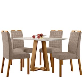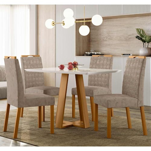 Conjunto Sala de Jantar Mesa Lectus 1,20m com 4 Cadeiras Mariah Ypê/Off White/Lux - New Ceval