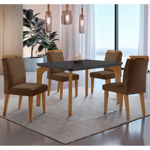 Conjunto Sala de Jantar Mesa Liz 120cm MDF Canto Copo e 4 Cadeiras Athenas Moderna - Marrom
