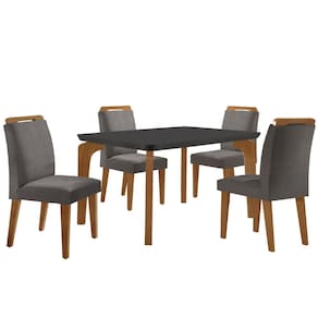 Conjunto Sala de Jantar Mesa Liz 120cm MDF Canto Copo e 4 Cadeiras Athenas Moderna - Cinza Claro