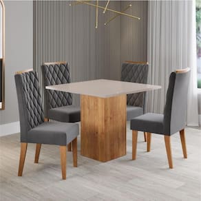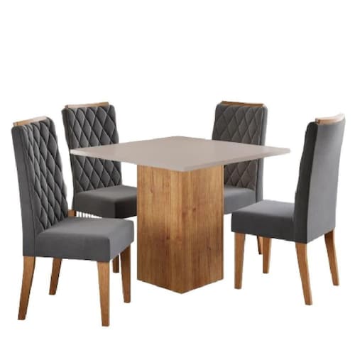 Conjunto Sala De Jantar Mesa Lord Quadrada 0,90m 4 Cadeiras Bele Veludo Viero Off White / Cinza
