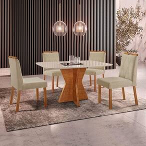 Escala de Brilho: Semi-Brilho Cor Predominante: Mel Encosto e Assento Estofados, Revestidos em Veludo ou Linho Enchimento do Assento: Espuma D-20 Medida da Mesa (A x L x P): 78 X 120 X 80 cm Medida da Base (A x L x P): 75 X 60 X 60 cm Medida do Tampo (L x C x E): 86 X 126 X 2,1 cm Medida da Cadeira/Banco (A x L x P): 94 X 46 X 55 cm Material da Base da Mesa: MDF Peso da Cadeira: 8,5 Kg Cadeira Suporta Até 120 Kg Acabamento da Cadeira: Verniz Natural Material da Estrutura da Cadeira: MDF/Madeira Maciça Cor do Tampo: Off White Cor da Base: Mel Enchimento do Encosto: Espuma D-14 Almofada do Assento: Fixa Estrutura do Assento: MDF 6mm/Espuma 40mm Peso da Mesa: 36 Kg Acabamento da Mesa: Verniz Natural Mesa Suporta Até 30 Kg Formato do Tampo: Retângular Material do Tampo: Vidro 3mm/MDF 18mm