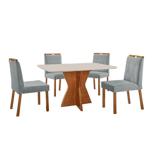 Escala de Brilho: Semi-Brilho Cor Predominante: Mel Encosto e Assento Estofados, Revestidos em Veludo ou Linho Enchimento do Assento: Espuma D-20 Medida da Mesa (A x L x P): 78 X 120 X 80 cm Medida da Base (A x L x P): 75 X 60 X 60 cm Medida do Tampo (L x C x E): 86 X 126 X 2,1 cm Medida da Cadeira/Banco (A x L x P): 94 X 46 X 55 cm Material da Base da Mesa: MDF Peso da Cadeira: 8,5 Kg Cadeira Suporta Até 120 Kg Acabamento da Cadeira: Verniz Natural Material da Estrutura da Cadeira: MDF/Madeira Maciça Cor do Tampo: Off White Cor da Base: Mel Enchimento do Encosto: Espuma D-14 Almofada do Assento: Fixa Estrutura do Assento: MDF 6mm/Espuma 40mm Peso da Mesa: 36 Kg Acabamento da Mesa: Verniz Natural Mesa Suporta Até 30 Kg Formato do Tampo: Retângular Material do Tampo: Vidro 3mm/MDF 18mm