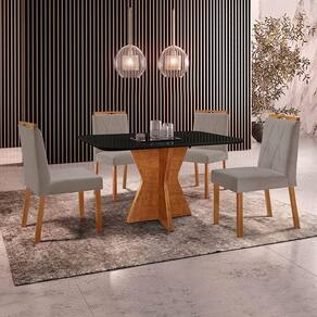 Escala de Brilho: Semi-Brilho Cor Predominante: Mel Encosto e Assento Estofados, Revestidos em Veludo ou Linho Enchimento do Assento: Espuma D-20 Medida da Mesa (A x L x P): 78 X 120 X 80 cm Medida da Base (A x L x P): 75 X 60 X 60 cm Medida do Tampo (L x C x E): 86 X 126 X 2,1 cm Medida da Cadeira/Banco (A x L x P): 94 X 46 X 55 cm Material da Base da Mesa: MDF Peso da Cadeira: 8,5 Kg Cadeira Suporta Até 120 Kg Acabamento da Cadeira: Verniz Natural Material da Estrutura da Cadeira: MDF/Madeira Maciça Cor do Tampo: Preto Cor da Base: Mel Enchimento do Encosto: Espuma D-14 Almofada do Assento: Fixa Estrutura do Assento: MDF 6mm/Espuma 40mm Peso da Mesa: 36 Kg Acabamento da Mesa: Verniz Natural Mesa Suporta Até 30 Kg Formato do Tampo: Retângular Material do Tampo: Vidro 3mm/MDF 18mm