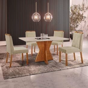 Escala de Brilho: Semi-Brilho Cor Predominante: Mel Encosto e Assento Estofados, Revestidos em Veludo ou Linho Enchimento do Assento: Espuma D-20 Medida da Mesa (A x L x P): 78 X 140 X 80 cm Medida da Base (A x L x P): 75 X 63 X 98 cm Medida do Tampo (L x C x E): 84 X 144 X 2,1 cm Medida da Cadeira/Banco (A x L x P): 94 X 46 X 55 cm Material da Base da Mesa: MDF Peso da Cadeira: 8,5 Kg Cadeira Suporta Até 120 Kg Acabamento da Cadeira: Verniz Natural Material da Estrutura da Cadeira: MDF/Madeira Maciça Cor do Tampo: Off White Cor da Base: Mel Enchimento do Encosto: Espuma D-14 Almofada do Assento: Fixa Estrutura do Assento: MDF 6mm/Espuma 40mm Peso da Mesa: 29,5 Kg Acabamento da Mesa: Verniz Natural Mesa Suporta Até 30 Kg Formato do Tampo: Retângular Material do Tampo: Vidro 3mm/MDF 18mm