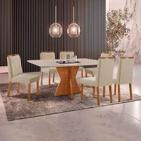 Escala de Brilho: Semi-Brilho Cor Predominante: Mel Encosto e Assento Estofados, Revestidos em Veludo ou Linho Enchimento do Assento: Espuma D-20 Medida da Mesa (A x L x P): 78 X 160 X 90 cm Medida da Base (A x L x P): 75 X 63 X 98 cm Medida do Tampo (L x C x E): 98 X 163 X 2,8 cm Medida da Cadeira/Banco (A x L x P): 94 X 46 X 55 cm Material da Base da Mesa: MDF Peso da Cadeira: 8,5 Kg Cadeira Suporta Até 120 Kg Acabamento da Cadeira: Verniz Natural Material da Estrutura da Cadeira: MDF/Madeira Maciça Cor do Tampo: Off White Cor da Base: Mel Enchimento do Encosto: Espuma D-14 Almofada do Assento: Fixa Estrutura do Assento: MDF 6mm/Espuma 40mm Peso da Mesa: 52 Kg Acabamento da Mesa: Verniz Natural Mesa Suporta Até 30 Kg Formato do Tampo: Retângular Material do Tampo: Vidro 3mm/MDF 25mm