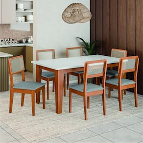 MODELO: Conjunto Sala de Jantar Mesa Miami 1,60m 6 Cadeiras Santiago