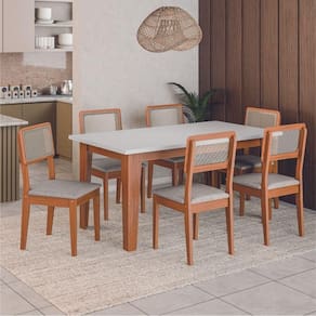 MODELO: Conjunto Sala de Jantar Mesa Miami 1,60m 6 Cadeiras Santiago