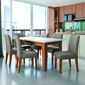 MODELO: Conjunto Sala de Jantar Mesa Miami 1,60m 6 Cadeiras Trieste