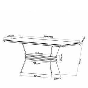 Dimensões Mesa: Altura: 83,2 cm Largura: 180 cm Profundidade: 90 cm
