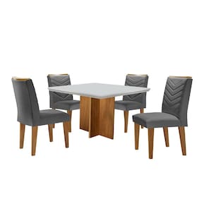 Conjunto Sala de Jantar Mesa Olímpia 90cm MDF Canto Reto e 4 Cadeiras Liz Moderna