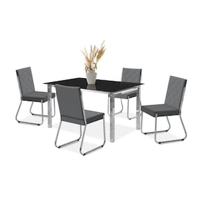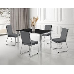 Conjunto Sala de Jantar Mesa ORTENIA COM 4 Cadeiras DINAH Conjunto design Clássico porém moderno. Mesa em aço cromado polido de alto brilho, de pés robustos com encaixe perfeito e preciso das travas nos pés da mesa, a delicadeza fica por conta do TAMPO DE vidro TEMPERADO SERIGRAFADO . Cadeiras resistentes e reforçadas, de aço cromado polido de alto brilho, com pés EM ARMAÇÃO ÚNICA dando um toque de sofisticação a cadeira, ASSENTO E ENCOSTO TAPEÇADOS, DANDO CONFORTE E MODERNIDADE A CADEIRA. Produtos de montagem fácil e funcional. Medida da Mesa (A x L x P): 77cm x 80cm x 120cm Peso da Mesa: 45,25 kg Mesa suporta até: 35.0000 Acabamento da Cadeira/Banco: Cromado Acabamento da Mesa: Cromado Acompanha Manual de Instalação: Sim Almofada do assento: Fixa Almofada do encosto: Fixa Altura do Conjunto: 80 Ambiente Principal: Sala de Jantar Cadeira/Banco estofada: Sim Cadeira/Banco suporta até: 100.0000 codigo_ean: 7909903357415 Complexidade da Montagem: Baixa: pode ser montado por uma pessoa sozinha Cor: Cromado/Cinza/Preto Cor do Produto: Cromado/Cinza/Preto Design da Base: 4 Pés Enchimento do Assento: Espuma D-16 Enchimento do Encosto: Espuma D-23 Escala de Brilho: Brilhante Espessura do Tampo: 45 mm Estrutura do Assento: MDF Formato do Tampo: Retangular Itens Inclusos: 1 Mesa, 4 Cadeiras, Kit Ferragens e Manual de Montagem Linha ou Coleção: Ortenia/Dinah Manual de Especificação Técnica: https://product-hub-prd.madeiramadeira.com.br/859363/documents/b033cbea-d788-4f42-a489-7e4a3bf13902asdeisenewmesaonixortencia.pdf Manual de Montagem e Instalação: https://product-hub-prd.madeiramadeira.com.br/859363/documents/893cfb39-2e5e-49c8-be05-8c05c3058ed4asdeisenewmesaonixortencia.pdf Material da Base da Mesa: Aço Carbono Material da Estrutura da Cadeira: Aço Carbono Material do Tampo: MDF/Vidro Material Principal: Aço Carbono Cromado Material Principal das Cadeiras/Bancos: Aço Carbono Medida da Base (A x L x P): 77cm x 80cm x 120cm Medida da Cadeira/Banco (A x L x P): 92x53x47cm Medida do Tampo (L x C x E): 80x120x6cm Mesa Dobrável: Não Necessita Montagem: Sim Origem do Produto: Nacional Peso da Cadeira/Banco: 5 kg Possui Apoio para Braços: Não Possui Apoio Para os Pés: Não Possui Prateleiras: Não Possui Suporte Giratório: Não Possui Vidro: Sim Quantidade de Cadeiras: 4 Quantidade de Lugares: 04 Recomendações de Uso, Manutenção e Limpeza: Limpeza com pano macio e levemente umedecido. Não ultilizar solventes a base e de inflamáveis. Não utilizar produtos abrasivos. Revestimento da Cadeira/Banco: Suede Sistema de Montagem: Fácil Tipo de Assento: Fixo Tipo de Encosto: Estofado