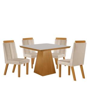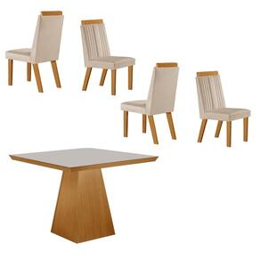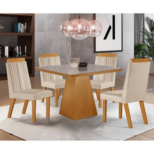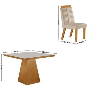 Transforme cada refeição em um momento especial com o Conjunto Sala de Jantar Mesa Prada com Tampo de Vidro 90cm e 4 Cadeiras em MDF Florença LJ Móveis composta por uma mesa de 90cm com tampo de vidro temperado serigrafado de 4mm e acabamento UV, o modelo traz um toque de luxo e sofisticação ao ambiente. Seu tampo em taburato com quinas abauladas alia elegância à segurança no uso diário. As quatro cadeiras bordadas com costuras decorativas oferecem conforto superior graças à espuma D20 no assento e D18 no encosto, ideais para proporcionar bem-estar nas refeições. Fabricadas 100 em MDF com acabamento UV, suportam até 100kg cada, garantindo resistência e durabilidade. Um conjunto perfeito para quem busca beleza, aconchego e qualidade para sua sala de jantar.