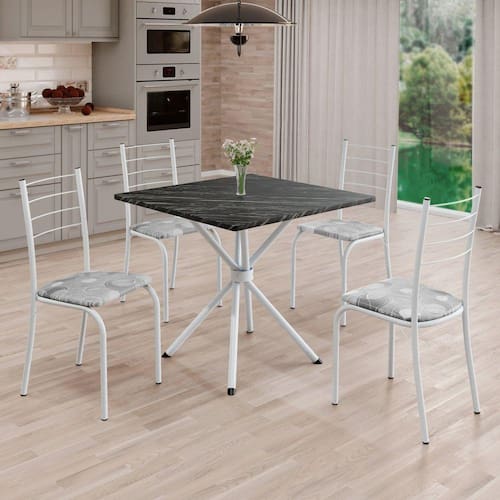 O Conjunto Sala de Jantar Rio é uma ótima escolha para quem busca combinar estilo e praticidade. Este conjunto apresenta uma mesa quadrada com um design elegante e moderno, acompanhada por quatro cadeiras. A mesa tem uma estrutura em aço, que oferece estabilidade ao conjunto. O tampo em pedra ardósia indiana apresenta uma estética sofisticada e acolhedora. A tonalidade indiana adiciona calor e elegância ao ambiente, enquanto a pedra ardósia oferece durabilidade e resistência a riscos e manchas. Essa combinação de cores naturais e resistência prática resulta em um visual clássico e funcional, tornando o tampo em pedra ardósia indiana uma ótima escolha para aprimorar sua sala de jantar. Medida da Mesa (A x L x P): 75 cm x 70 cm x 70 cm Peso da Mesa: 24,8 kg Mesa suporta até: 15 kg Acabamento da Cadeira/Banco: Pintura Texturizada Acabamento da Mesa: Pintura Texturizada Ambiente Principal: Sala de Jantar Cadeira/Banco estofada: Somente Assento Estofado Cadeira/Banco suporta até: 120 kg Complexidade da Montagem: Média: pode ser montado por mais de uma pessoa e/ou necessite de maior conhecimento para montagem Cor: Paraopeba / Branco Cor do Produto: Paraopeba / Branco Cor Secundária: Cinza De Canto (Canto Alemão): Não Escala de Brilho: Semi-Fosco Espessura do Tampo: 18 mm Estrutura do Assento: MDP de 15mm, espuma 1,2mm, courino. Formato do Tampo: Quadrado Itens Inclusos: 1 Mesa, 4 Cadeiras, Manual de Montagem e Ferragens Manual de Montagem e Instalação: https://product-hub-prd.madeiramadeira.com.br/898615/documents/480178ce-1c50-4612-b427-9feed1f7794a1847485manualdemontagem.pdf Material da Base da Mesa: Aço Material da Estrutura da Cadeira: Aço Material do Tampo: Ardósia Medida da Base (A x L x P): 73,2 cm x 46 cm x 46 cm Medida da Cadeira/Banco (A x L x P): 84,5 cm x 37,5 cm x 41,5 cm Medida do Tampo (L x C x E): 70 cm x 70 cm x 1,8 cm Mesa Extensível: Não Necessita Montagem: Sim Origem do Produto: Nacional Peso da Cadeira/Banco: 2,48 kg Possui Apoio Para os Pés: Não Quantidade de Cadeiras: 4 Quantidade de Lugares: 04 Recomendações de Uso, Manutenção e Limpeza: Limpe a superfície usando um pano úmido com a solução(75%água + 15%detergente neutro), torça para retirar o excesso e, em seguida, finalize com um pano limpo e seco. Sistema de Montagem: Parafusos