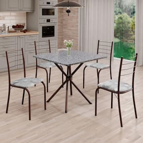 O Conjunto Sala de Jantar Rio é uma ótima escolha para quem busca combinar estilo e praticidade. Este conjunto apresenta uma mesa quadrada com um design elegante e moderno, acompanhada por quatro cadeiras. A mesa tem uma estrutura em aço, que oferece estabilidade ao conjunto. O tampo em pedra granito ocre apresenta uma estética sofisticada e acolhedora. A tonalidade ocre adiciona calor e elegância ao ambiente, enquanto a pedra granito oferece durabilidade e resistência a riscos e manchas. Essa combinação de cores naturais e resistência prática resulta em um visual clássico e funcional, tornando o tampo em pedra granito ocre uma ótima escolha para aprimorar sua sala de jantar. Medida da Mesa (A x L x P): 75 cm x 70 cm x 70 cm Peso da Mesa: 28,7 kg Mesa suporta até: 15 kg Acabamento da Cadeira/Banco: Pintura Texturizada Acabamento da Mesa: Pintura Texturizada Ambiente Principal: Sala de Jantar Cadeira/Banco estofada: Somente Assento Estofado Cadeira/Banco suporta até: 120 kg Complexidade da Montagem: Média: pode ser montado por mais de uma pessoa e/ou necessite de maior conhecimento para montagem Cor: Paraopeba / Marrom Cor do Produto: Paraopeba / Marrom Cor Secundária: Cinza De Canto (Canto Alemão): Não Escala de Brilho: Semi-Fosco Espessura do Tampo: 18 mm Estrutura do Assento: MDP de 15mm, espuma 1,2mm, courino. Formato do Tampo: Quadrado Itens Inclusos: 1 Mesa, 4 Cadeiras, Manual de Montagem e Ferragens Manual de Montagem e Instalação: https://product-hub-prd.madeiramadeira.com.br/898495/documents/86358d34-b852-4813-aa51-135c343f252a1847485manualdemontagem.pdf Material da Base da Mesa: Aço Material da Estrutura da Cadeira: Aço Material do Tampo: Granito Medida da Base (A x L x P): 73,2 cm x 46 cm x 46 cm Medida da Cadeira/Banco (A x L x P): 84,5 cm x 37,5 cm x 41,5 cm Medida do Tampo (L x C x E): 70 cm x 70 cm x 1,8 cm Mesa Extensível: Não Necessita Montagem: Sim Origem do Produto: Nacional Peso da Cadeira/Banco: 2,48 kg Possui Apoio Para os Pés: Não Quantidade de Cadeiras: 4 Quantidade de Lugares: 04 Recomendações de Uso, Manutenção e Limpeza: Limpe a superfície usando um pano úmido com a solução(75%água + 15%detergente neutro), torça para retirar o excesso e, em seguida, finalize com um pano limpo e seco. Sistema de Montagem: Parafusos