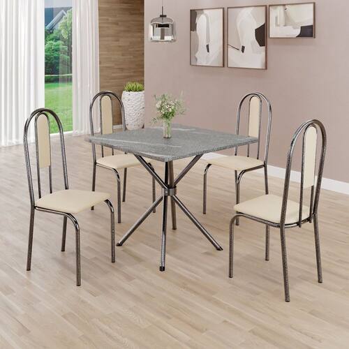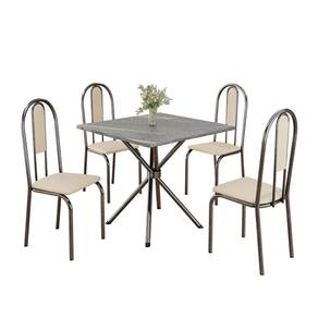 Conjunto Sala de Jantar Mesa Quadrada 70x70cm Tampo Granito Topázio 4 Cadeiras Linda Yescasa Creme/Prata