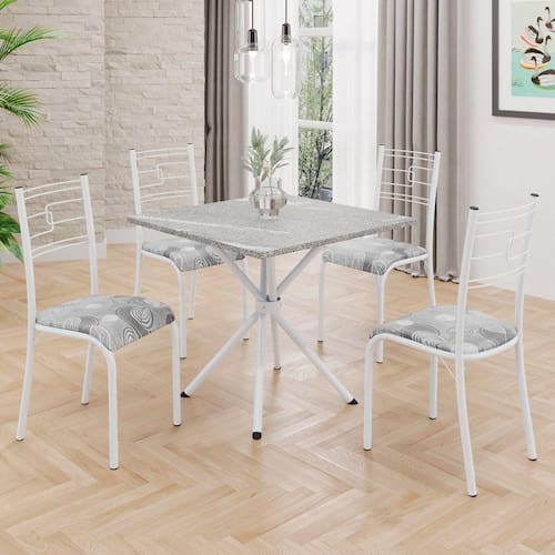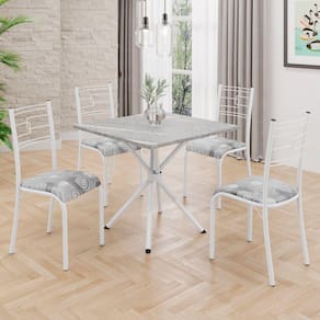 O Conjunto Sala de Jantar Paraty é uma ótima escolha para quem busca combinar estilo e praticidade. Este conjunto apresenta uma mesa quadrada com um design elegante e moderno, acompanhada por quatro cadeiras. A mesa tem uma estrutura em aço, que oferece estabilidade ao conjunto. O tampo em pedra granito topázio apresenta uma estética sofisticada e acolhedora. A tonalidade topázio adiciona calor e elegância ao ambiente, enquanto a pedra granito oferece durabilidade e resistência a riscos e manchas. Essa combinação de cores naturais e resistência prática resulta em um visual clássico e funcional, tornando o tampo em pedra granito topázio uma ótima escolha para aprimorar sua sala de jantar. Medida da Mesa (A x L x P): 75,3 cm x 70 cm x 70 cm Peso da Mesa: 27,92 kg Mesa suporta até: 15.0000 Acabamento da Cadeira/Banco: Pintura Texturizada Acabamento da Mesa: Pintura Texturizada Ambiente Principal: Sala de Jantar Cadeira/Banco estofada: Somente Assento Estofado Cadeira/Banco Estofada: Somente Assento Estofado Cadeira/Banco suporta até: 120.0000 codigo_ean: 7909903605813 Complexidade da Montagem: Média: pode ser montado por mais de uma pessoa e/ou necessite de maior conhecimento para montagem Cor: Paraopeba / Branco Cor do Produto: Paraopeba / Branco De Canto (Canto Alemão): Não Enchimento do Assento: Espuma D-12 Escala de Brilho: Semi-Fosco Espessura do Tampo: 18 mm Formato do Tampo: Quadrado Itens Inclusos: 1 mesa, 4 cadeiras, manual de montagem e ferragens. Manual de Montagem e Instalação: https://product-hub-prd.madeiramadeira.com.br/896426/documents/2b47945f-6ba9-4e12-9d0d-b5d96e380f8btagemmesaparatybaseipanema.pdf Material da Base da Mesa: Aço Material da Estrutura da Cadeira: Aço Material do Tampo: Granito Medida da Base (A x L x P): 73,5 cm x 46 cm x 46 cm Medida da Cadeira/Banco (A x L x P): 90 cm x 36,4 cm x 46 cm Medida do Tampo (L x C x E): 70 cm x 70 cm x 1,8 cm Mesa Extensível: Não Necessita Montagem: Sim Origem do Produto: Nacional Peso da Cadeira/Banco: 2,38 kg Possui Apoio Para os Pés: Não Quantidade de Cadeiras: 4 Quantidade de Lugares: 04 Recomendações de Uso, Manutenção e Limpeza: Limpe a superfície usando um pano úmido com a solução(75%água + 15%detergente neutro), torça para retirar o excesso e, em seguida, finalize com um pano limpo e seco. Revestimento da Cadeira/Banco: Courino Sistema de Montagem: PARAFUSOS
