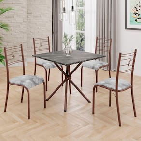 Conjunto Sala de Jantar Mesa Quadrada 70x70cm Tampo Mdp Ardósia Indiana 4 Cadeiras Paraty Paraopeba / Marrom