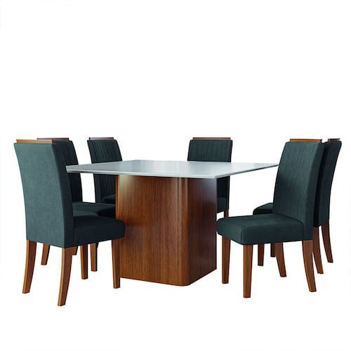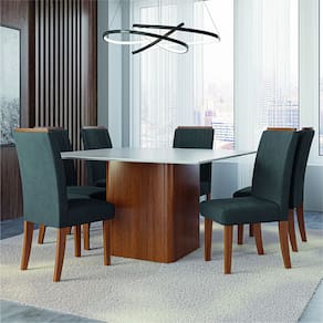 O conjunto de Mesa Montevideo com 6 cadeiras Grécia é a combinação perfeita de charme e sofisticação para o seu lar. A mesa alia elegância e praticidade, graças ao MDF de alta resistência e qualidade, que é fácil de limpar e mantém seu brilho por mais tempo. Seu design compacto e versátil é ideal para ambientes modernos e sofisticados. A Cadeira Grécia é uma peça de destaque que traz estilo e conforto para o seu espaço. Com assento acolchoado e encosto bordado com espaldar, ela é revestida com tecido Veluplus de alta qualidade, que oferece toque macio e durabilidade. Feita com materiais resistentes e fáceis de limpar, a cadeira recebe um acabamento com quatro camadas de proteção, garantindo maior durabilidade e resistência. Este conjunto é perfeito para quem busca estilo, conforto e praticidade em um único produto.