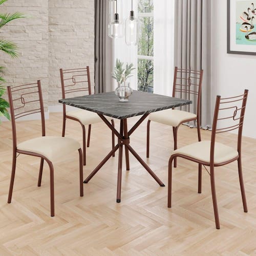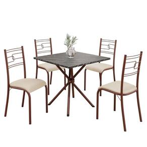 Conjunto Sala de Jantar Mesa Quadrada70x70cm Tampo Ardósia Indiana 4 Cadeiras Paraty Creme / Marrom