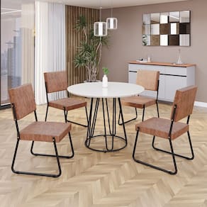 Este conjunto de mesa redonda e 4 cadeiras oferece estilo e praticidade. Com estrutura tubular em aço para estabilidade, o tampo em MDF Laca off white com vidro adiciona sofisticação e resistência a riscos e manchas. As cadeiras combinam harmoniosamente com a mesa, garantindo conforto com estofamento. Ideal para diversos espaços, é perfeito para receber convidados ou desfrutar de refeições em família, criando um ambiente acolhedor e elegante.