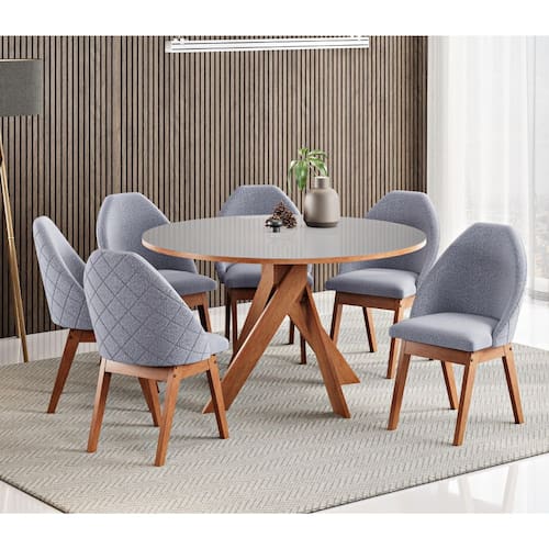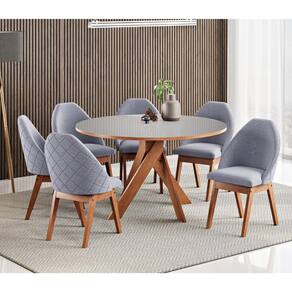 O conjunto de sala de jantar composto por uma mesa redonda de 137 cm e seis cadeiras Grécia da marca Madetal é uma opção sofisticada e funcional para quem busca conforto e elegância na decoração de sua sala de jantar.