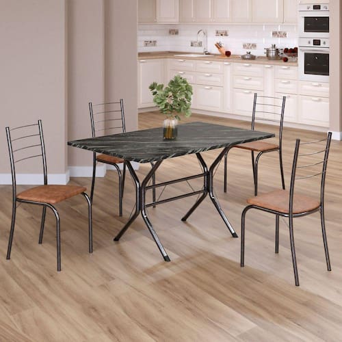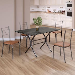 O Conjunto Sala de Jantar Rio é uma ótima escolha para quem busca combinar estilo e praticidade. Este conjunto apresenta uma mesa Retangular com um design elegante e moderno, acompanhada por quatro cadeiras. A mesa tem uma estrutura em aço, que oferece estabilidade ao conjunto. O tampo em pedra ardósia indiana apresenta uma estética sofisticada e acolhedora. A tonalidade indiana adiciona calor e elegância ao ambiente, enquanto a pedra ardósia oferece durabilidade e resistência a riscos e manchas. Essa combinação de cores naturais e resistência prática resulta em um visual clássico e funcional, tornando o tampo em pedra ardósia indiana uma ótima escolha para aprimorar sua sala de jantar. Medida da Mesa (A x L x P): 75,8 cm x 100 cm x 60 cm Peso da Mesa: 29,02 kg Mesa suporta até: 15 kg Acabamento da Cadeira/Banco: Pintura Texturizada Acabamento da Mesa: Pintura Texturizada Ambiente Principal: Sala de Jantar Cadeira/Banco estofada: Somente Assento Estofado Cadeira/Banco suporta até: 120 kg Complexidade da Montagem: Média: pode ser montado por mais de uma pessoa e/ou necessite de maior conhecimento para montagem Cor: C. Marrom / Mart Prata Cor do Produto: C. Marrom / Mart Prata Cor Secundária: Marrom De Canto (Canto Alemão): Não Escala de Brilho: Semi-Fosco Espessura do Tampo: 18 mm Estrutura do Assento: MDP de 15mm, espuma 1,2mm, courino. Formato do Tampo: Retangular Itens Inclusos: 1 Mesa, 4 Cadeiras, Manual de Montagem e Ferragens Manual de Montagem e Instalação: https://product-hub-prd.madeiramadeira.com.br/897565/documents/87bfe317-821e-4d93-8700-52392217c00c1837585cjriocabofrio.pdf Material da Base da Mesa: Aço Material da Estrutura da Cadeira: Aço Material do Tampo: Ardósia Medida da Base (A x L x P): 74 cm x 58,9 cm x 70 cm Medida da Cadeira/Banco (A x L x P): 84,5 cm x 37,5 cm x 41,5 cm Medida do Tampo (L x C x E): 60 cm x 100 cm x 1,8 cm Mesa Extensível: Não Necessita Montagem: Sim Origem do Produto: Nacional Peso da Cadeira/Banco: 2,48 kg Possui Apoio Para os Pés: Não Quantidade de Lugares: 04 Recomendações de Uso, Manutenção e Limpeza: Limpe a superfície usando um pano úmido com a solução(75%água + 15%detergente neutro), torça para retirar o excesso e, em seguida, finalize com um pano limpo e seco. Sistema de Montagem: Parafusos