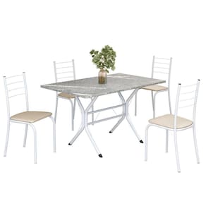 O Conjunto Sala de Jantar Rio é uma ótima escolha para quem busca combinar estilo e praticidade. Este conjunto apresenta uma mesa Retangular com um design elegante e moderno, acompanhada por quatro cadeiras. A mesa tem uma estrutura em aço, que oferece estabilidade ao conjunto. O tampo em pedra granito topázio apresenta uma estética sofisticada e acolhedora. A tonalidade topázio adiciona calor e elegância ao ambiente, enquanto a pedra granito oferece durabilidade e resistência a riscos e manchas. Essa combinação de cores naturais e resistência prática resulta em um visual clássico e funcional, tornando o tampo em pedra granito topázio uma ótima escolha para aprimorar sua sala de jantar. Medida da Mesa (A x L x P): 75,8 cm x 100 cm x 60 cm Peso da Mesa: 34,6 kg Mesa suporta até: 15 kg Acabamento da Cadeira/Banco: Pintura Texturizada Acabamento da Mesa: Pintura Texturizada Ambiente Principal: Sala de Jantar Cadeira/Banco estofada: Somente Assento Estofado Cadeira/Banco suporta até: 120 kg Complexidade da Montagem: Média: pode ser montado por mais de uma pessoa e/ou necessite de maior conhecimento para montagem Cor: Creme / Branco Cor do Produto: Creme / Branco Cor Secundária: Bege De Canto (Canto Alemão): Não Escala de Brilho: Semi-Fosco Espessura do Tampo: 18 mm Estrutura do Assento: MDP de 15mm, espuma 1,2mm, courino. Formato do Tampo: Retangular Itens Inclusos: 1 Mesa, 4 Cadeiras, Manual de Montagem e Ferragens Manual de Montagem e Instalação: https://product-hub-prd.madeiramadeira.com.br/897714/documents/c54f6c17-9cb9-4043-a6df-d901b27ab2991837585cjriocabofrio.pdf Material da Base da Mesa: Aço Material da Estrutura da Cadeira: Aço Material do Tampo: Granito Medida da Base (A x L x P): 74 cm x 58,9 cm x 70 cm Medida da Cadeira/Banco (A x L x P): 84,5 cm x 37,5 cm x 41,5 cm Medida do Tampo (L x C x E): 60 cm x 100 cm x 1,8 cm Mesa Extensível: Não Necessita Montagem: Sim Origem do Produto: Nacional Peso da Cadeira/Banco: 2,48 kg Possui Apoio Para os Pés: Não Quantidade de Lugares: 04 Recomendações de Uso, Manutenção e Limpeza: Limpe a superfície usando um pano úmido com a solução(75%água + 15%detergente neutro), torça para retirar o excesso e, em seguida, finalize com um pano limpo e seco. Sistema de Montagem: Parafusos