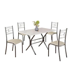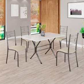 Conjunto Sala de Jantar Mesa Retangular 100x60cm Tampo Madeira Mdp 4 Cadeiras Paraty Creme / Mart Prata