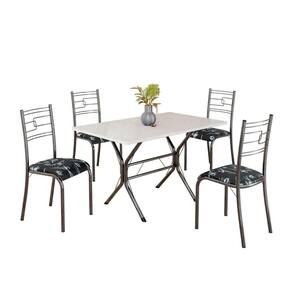Conjunto Sala de Jantar Mesa Retangular 100x60cm Tampo Madeira Mdp 4 Cadeiras Paraty Preto Floral / Mart Prata