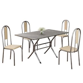 Conjunto Sala de Jantar Mesa Retangular 120x75cm Tampo Granito Topázio 4 Cadeiras Linda Yescasa Creme/Prata