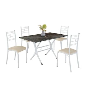 Conjunto Sala de Jantar Mesa Retangular 120x75cm Tampo Madeira Mdp Ardósia Indiana 4 Cadeiras Paraty Creme / Branco