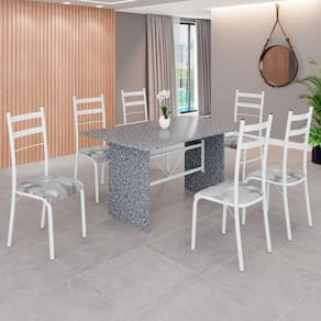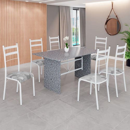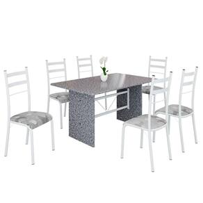 Conjunto Sala de Jantar Mesa Retangular 140x75cm Tampo Granito Ocre 6 Cadeiras Marselha Paraopeba / Branco