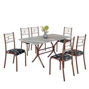 Conjunto Sala de Jantar Mesa Retangular 140x75cm Tampo Granito Topázio 6 Cadeiras Paraty Preto Floral / Marrom
