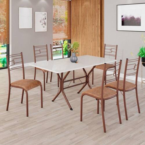O Conjunto Sala de Jantar Paraty é uma ótima escolha para quem busca combinar estilo e praticidade. Este conjunto apresenta uma mesa retangular com um design elegante e moderno, acompanhada por seis cadeiras. A mesa tem uma estrutura em aço, que oferece estabilidade ao conjunto. O tampo em madeira MDP off white apresenta uma estética sofisticada e acolhedora. A tonalidade off white adiciona calor e elegância ao ambiente, enquanto a madeira MDP oferece durabilidade e resistência a riscos e manchas. Essa combinação de cores naturais e resistência prática resulta em um visual clássico e funcional, tornando o tampo em madeira MDP off white uma ótima escolha para aprimorar sua sala de jantar. Medida da Mesa (A x L x P): 75,5 cm x 140 cm x 75 cm Peso da Mesa: 13,72 kg Mesa suporta até: 15.0000 Acabamento da Cadeira/Banco: Pintura Texturizada Ambiente Principal: Sala de Jantar Cadeira/Banco Estofada: Somente Assento Estofado Cadeira/Banco estofada: Somente Assento Estofado Cadeira/Banco suporta até: 120.0000 codigo_ean: 7909903589274 Complexidade da Montagem: Média: pode ser montado por mais de uma pessoa e/ou necessite de maior conhecimento para montagem Cor: C. Marrom / Marrom Cor do Produto: C. Marrom / Marrom De Canto (Canto Alemão): Não Escala de Brilho: Semi-Fosco Espessura do Tampo: 18 mm Formato do Tampo: Retangular Itens Inclusos: 1 mesa, 6 cadeiras, manual de montagem e ferragens. Manual de Montagem e Instalação: https://product-hub-prd.madeiramadeira.com.br/894075/documents/b8cafa32-0c58-4122-af13-489ef51cc9b1800365cjparatybasecabofrio.pdf Material da Base da Mesa: Aço Material da Estrutura da Cadeira: Aço Material do Tampo: MDP Medida da Cadeira/Banco (A x L x P): 90 cm x 36,4 cm x 46 cm Medida do Tampo (L x C x E): 75 cm x 140 cm x 1,5 cm Mesa Extensível: Não Necessita Montagem: Sim Origem do Produto: Nacional Peso da Cadeira/Banco: 2,38 kg Possui Apoio Para os Pés: Não Quantidade de Cadeiras: 6 Quantidade de Lugares: 06 Recomendações de Uso, Manutenção e Limpeza: Usar um pano de tecido macio e seco, evitar detergentes, alvejantes e produtos químicos de limpeza; no tampo usar tecido macio levemente umedecido. Sistema de Montagem: PARAFUSOS
