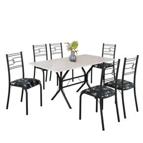 Conjunto Sala de Jantar Mesa Retangular 140x75cm Tampo Madeira Mdp Off White 6 Cadeiras Paraty Preto Floral / Preto Fosco