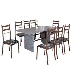 Conjunto Sala de Jantar Mesa Retangular 180x75cm Tampo Granito Ocre 8 Cadeiras Marselha Preto Floral / Marrom