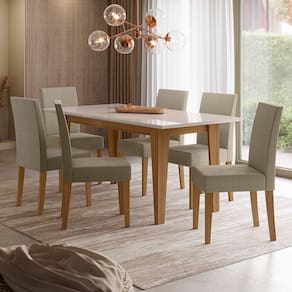 Com design contemporâneo a Mesa de Jantar Liz com 06 cadeiras é perfeita para completar seu ambiente. Possui base com 4 pés, tampo retangular off white 160x90cm em MDP 2,5cm com bordas chanfradas e aplicação de vidro 0,3cm pintado colado sob o tampo aumentando a durabilidade. Acompanha 06 cadeiras modelo Josi resistentes, revestidas em tecido suede aveludado liso que oferece maior suavidade e maciez, pés em MDF 2,5cm, assentos com espuma densidade D20 que garante uma excelente acomodação. Produtos com sapatas plásticas garantindo melhor durabilidade e estabilidade, acabamento em pintura UV que preserva a cor, ecologicamente corretos com embalagens preparadas afim de evitar danos permitindo que os produtos cheguem em perfeito estado em sua casa. Qualidade Poliman em seus produtos.