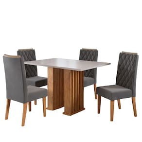 O conjunto de mesa Stade 1,20m com 4 cadeiras Bele é a escolha perfeita para cozinhas e salas de jantar que buscam conforto e estilo. O tampo em pintura UV garantindo maior durabilidade e oferece um acabamento moderno e sofisticado. Composta por duas colunas ripadas, criando um efeito visual Estiloso e requintado. As cadeiras são projetadas para combinar charme e resistência, transformando seu espaço em um local aconchegante e elegante. O encosto com bordados adiciona um toque de personalidade e sofisticação ao design, enquanto o assento com espuma oferece conforto ideal para o uso diário. Revestidas em tecido veludo, as cadeiras proporcionam um visual sofisticado e agradável ao toque. Os pés em MDF completam a peça com estabilidade e durabilidade, garantindo que o conjunto seja uma escolha duradoura e prática para seu lar.
