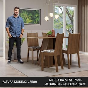 Cor: Marrom | Garantia: 3 meses contra defeitos de fabricação | Dimensões - Altura: 78 cm | Dimensões - Largura: 120 cm | Dimensões - Profundidade: 90 cm | Peso aproximado: 48 kg | Quantidade de Lugares: 4 lugares | Produto: Conjunto Sala de Jantar | Marca: Madesa | RBN: Casa/Móveis/Móveis para Sala de Jantar/Conjuntos para Sala de Jantar | Material: MDP/MDF | Material para Filtro: MDP/MDF | Estado de Origem: RS | Conteúdo da embalagem: 1 Conjunto de Jantar | Instruções/Cuidados: Utilize um pano limpo, levemente umedecido e seque em seguida a superfície. Não usar produtos químicos ou abrasivos para a limpeza. Recomendamos polir seu móvel com lustra-móveis duas a três vezes por ano. | Nome do Simples no Fornecedor: Conjunto Sala de Jantar Mesa Tampo de Madeira 4 Cadeiras Rustic/Hibiscos Marilyn Madesa | Produto precisa de Montagem?: Sim, sugerimos a contratação do nosso serviço de montagem (para os CEPs em que o serviço está disponível) ou de algum profissional experiente de sua preferência | Descrição do Tamanho: 78 cm x 120 cm x 90 cm | Comprimento Produto Com Embalagem (cm): 126.8 | Largura Produto Com Embalagem (cm): 91.8 | Altura do Produto com Embalagem (cm): 33.5 | Peso Produto Com Embalagem (Kg): 48 | Fabricante: Madesa | Contato do Fabricante: contato@madesa.com | Formato da Mesa: Retangular Cor: Rustic/Hibiscos