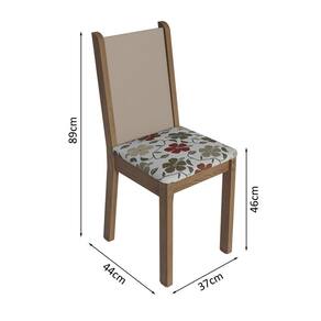 As cadeiras são produzidas em MDF e MDP, com assento estofado em tecido Floral Hibiscos, com uma estampa fácil de combinar com os mais variados ambientes.
