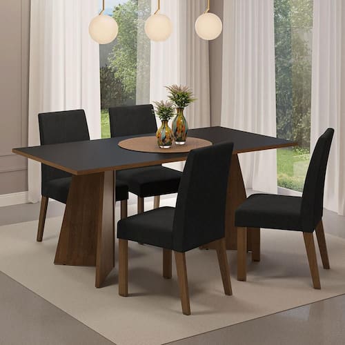 A mesa de jantar possui design super atual, com tampo em MDP e ótimo espaço disponível para as refeições.