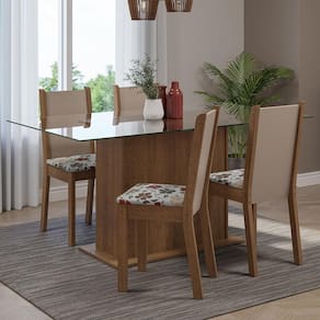 As cadeiras são fabricadas em MDF/MDP, garantindo qualidade e resistência. Além disso, o assento é estofado em tecido Floral Hibiscos, proporcionando um toque de conforto extra.