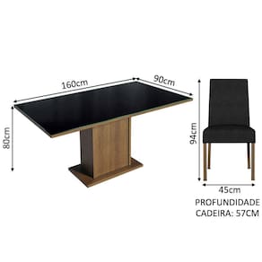 A mesa tem uma base incrível em pedestal e tampo retangular em MDP, com um vidro incolor sobreposto, garantindo muito espaço e resistência acomodar muito bem quatro pessoas.