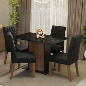 COR: Marrom | Garantia: 3 meses contra de fabricação | Dimensões - Altura: 78 cm | Dimensões - Largura: 104 cm | Dimensões - Profundidade: 68 cm | Peso aproximado: 48 kg | Produto: Conjunto Sala de Jantar | Quantidade de Lugares: 4 lugares | RBN: Casa/Móveis/Móveis para Sala de Jantar/Conjuntos para Sala de Jantar | Material: MDP/MDF | Material para Filtro: MDP/MDF | Estado de Origem: RS | Conteúdo da embalagem: 1 Conjunto de Jantar | Instruções/Cuidados: Utilize um pano limpo, levemente umedecido e seque em seguida a superfície. Não usar produtos químicos ou abrasivos para a limpeza. Recomendamos polir seu móvel com lustra-móveis duas a três vezes por ano. | Nome do Simples no Fornecedor: Conjunto Sala de Jantar Mesa Tampo de Vidro 4 Cadeiras Rustic/Preto/Oxford Reale Madesa | Produto precisa de Montagem?: Sim | Descrição do Tamanho: 78 cm x 104 cm x 68 cm | Comprimento Produto Com Embalagem (cm): 116,9 | Largura Produto Com Embalagem (cm): 76 | Altura do Produto com Embalagem (cm): 53 | Peso Produto Com Embalagem (Kg): 48,24 | Fabricante: Madesa | do Fabricante: | Formato da Mesa: Retangular | Quantidade de caixas de embalagem: 3 | Cômodo Indicado: Sala de Jantar | Bullet Point 0: Dimensões: 78 cm altura x 104 cm largura x 68 cm profundidade | Bullet Point 1: A mesa em pedestal combina conforto e modernidade, e seu tampo de madeira com vidro sobreposto | Bullet Point 2: Compacta e versátil, adapta-se perfeitamente também à cozinha. | Bullet Point 3: Possui acabamento de alta resistência, conservando a beleza do móvel por muito mais tempo | É Frágil: Não | Quantidade de Itens: 1 | Certificação de teste externa: Sim | Modelo: MDJA040201D8OX | Precisa de baterias ou pilhas: Não | da peça: MDJA040201D8OX | Quantidade de Cadeiras: 4 | Componetes Incluidos: Guia de Montagem | Preço sugerido sem impostos: | Cor: Rustic/Preto/Oxford