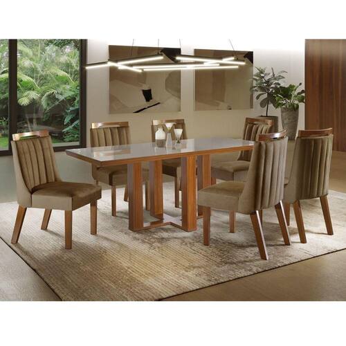 Quanto charme neste conjunto Lottus, não é mesmo? Tudo começa com esta linda combinação de cores clássicas e que são bem fáceis de inserir em um ambiente, ficando tudo aconchegante e sofisticado. A Mesa acolhe de forma satisfatória as cadeiras, aproveitando melhor o espaço e deixando o ambiente suave e lindo. As cadeiras possuem encostos no formato anatômico, que proporciona todo conforto e as melhores sensações que uma sala de jantar pode proporcionar. Suas refeições serão sempre assim, aconchegantes e inesquecíveis. Ambiente Principal: Sala de Jantar Estilo: Moderna Características Mesa: Espessura do Vidro: 4 mm Espessura do Tampo: 50 mm Produzida em: MDF/MDP Peso da Mesa: 54 kg Mesa suporta até: 50 kg Pintura Base: Pintura UV Pintura Tampo: Pintura UV Vidro Temperado: Sim Vidro Serigrafado: Sim Formato do Tampo: Retangular Dimensões Altura: 80cm Largura: 80cm Profundidade : 160cm Características Cadeira: Tecido: Pena Espuma Encosto: D18 Espuma Assento: D20 Peso da Cadeira: 8,95 kg Cadeira suporta até: 120 kg Pintura dos pés: Pintura UV Dimensões Altura: 96cm Largura: 45cm Profundidade : 63cm Você Receberá: 01 Mesa com 06 cadeiras desmontadas + manual de montagem + elementos para montagem Garantia: 03 Meses Necessita Montagem: Sim Complexidade da Montagem: Média - pode ser montado por mais de uma pessoa e/ou necessite de maior conhecimento para montagem Sistema de Montagem: Parafusos, Cavilhas, Cantoneiras, Sapatas, etc. Recomendações de Uso: Para manutenção e limpeza de seu móvel, use uma flanela seca ou umedecida. Não utilize produtos químicos que possam danificar o produto.